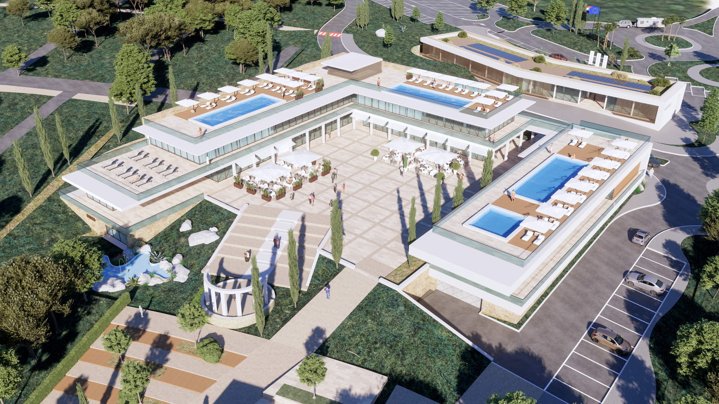 The project involves a comprehensive architectural redesign and detailed final planning aimed at transforming the Vestar Camping Village into a premier five-star holiday destination. This initiative encompasses a wide range of development activities designed to enhance the overall guest experience and elevate the property’s market positioning. The scope of work includes the construction of approximately 700 plots, which will be allocated for various types of accommodations and recreational activities, as well as the development of 300 mobile homes that will offer flexible and modern lodging options. Additionally, waterfront residences will be constructed to attract visitors seeking premium living experiences by the water. A key feature of the project is the establishment of a new central area, which will serve as the focal point for social and recreational activities. This area will be thoughtfully designed to include a variety of amenities such as a high-quality restaurant and a casual cafeteria, providing diverse dining options for guests. Retail outlets will be incorporated to offer convenience and shopping opportunities, while a wellness center will be developed to promote health and relaxation. The wellness facilities will include jacuzzis and whirlpools to enhance guest comfort and leisure. An amphitheater will be constructed to host cultural events, performances, and entertainment activities, creating a vibrant community atmosphere. An entertainment zone will also be integrated into the central area, offering various recreational options suitable for all age groups. The overall design will emphasize sustainability, aesthetic appeal, and functionality, ensuring that the upgraded Vestar Camping Village meets the expectations of discerning travelers seeking a luxurious and memorable holiday experience. The project aims to position the village as a leading destination in the region, combining natural beauty with modern amenities and exceptional service standards, thereby attracting a diverse clientele and fostering long-term growth and success.